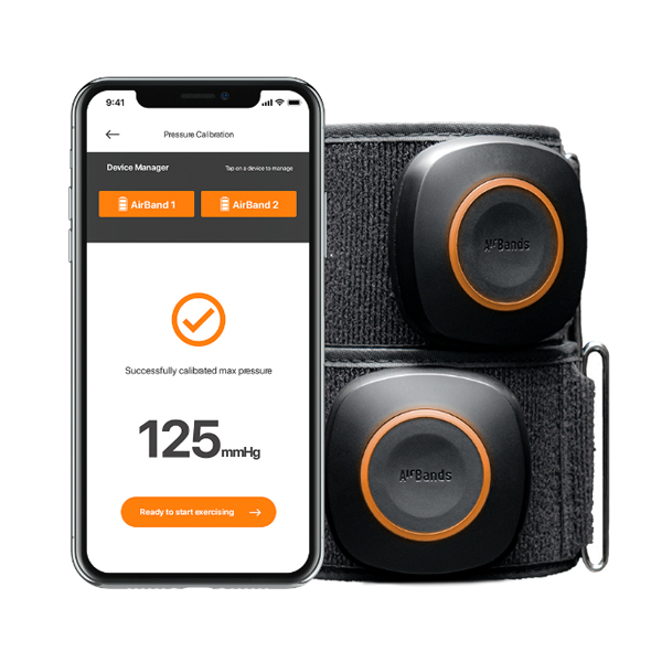 Tratamento por restrición de fluxo sanguíneo mediante presión pneumática con AirBands VALD Health (adestramento oclusivo).