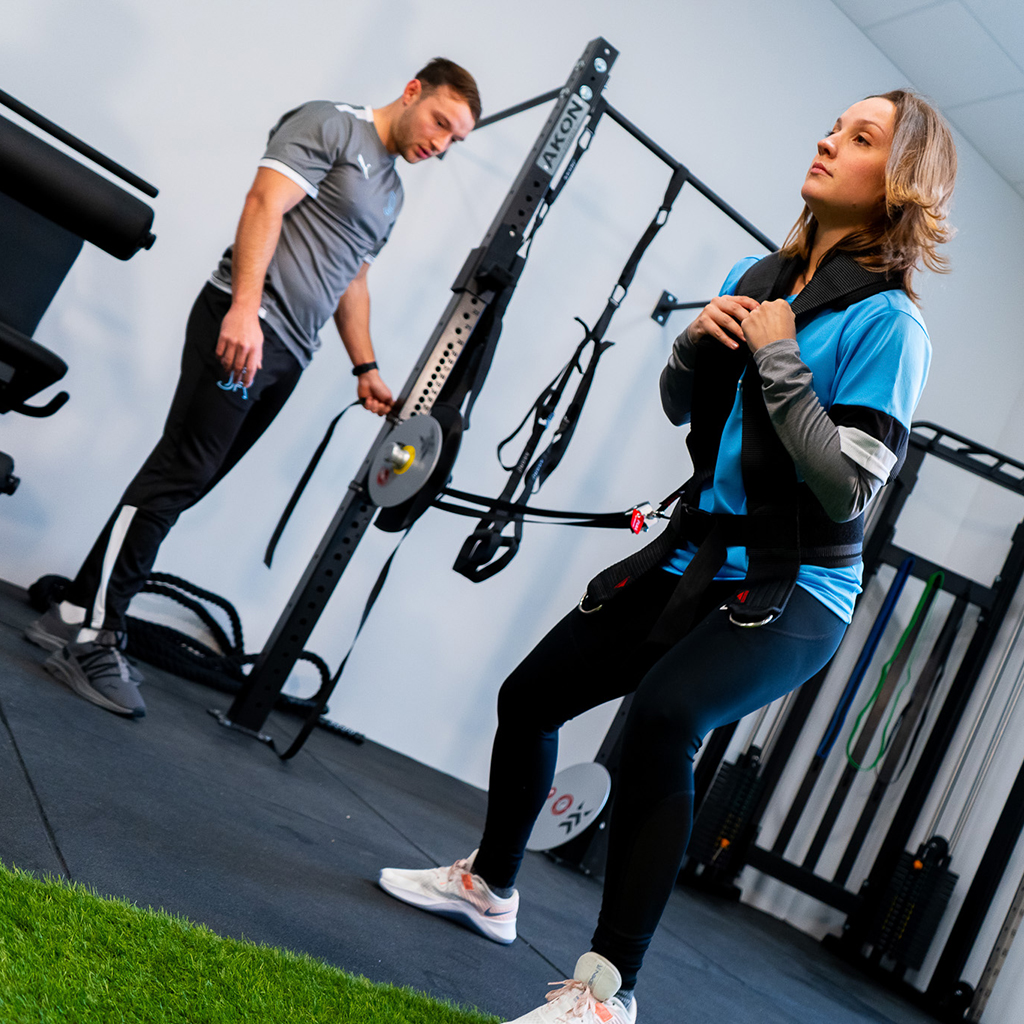 Espazo dedicado á realización de valoracións dinámicas e ao tratamento enfocado na mellora de síntomas a medio e longo prazo. Tamén é a área de traballo principal para a readaptación de lesións no deporte, especialmente en fases avanzadas do tratamento. Ademais, aquí lévanse a cabo tanto os adestramentos persoais e individualizados como as actividades en grupos reducidos para o acondicionamento físico, o rendemento deportivo ou a preparación de probas físicas. Está dividido en tres zonas diferenciadas.